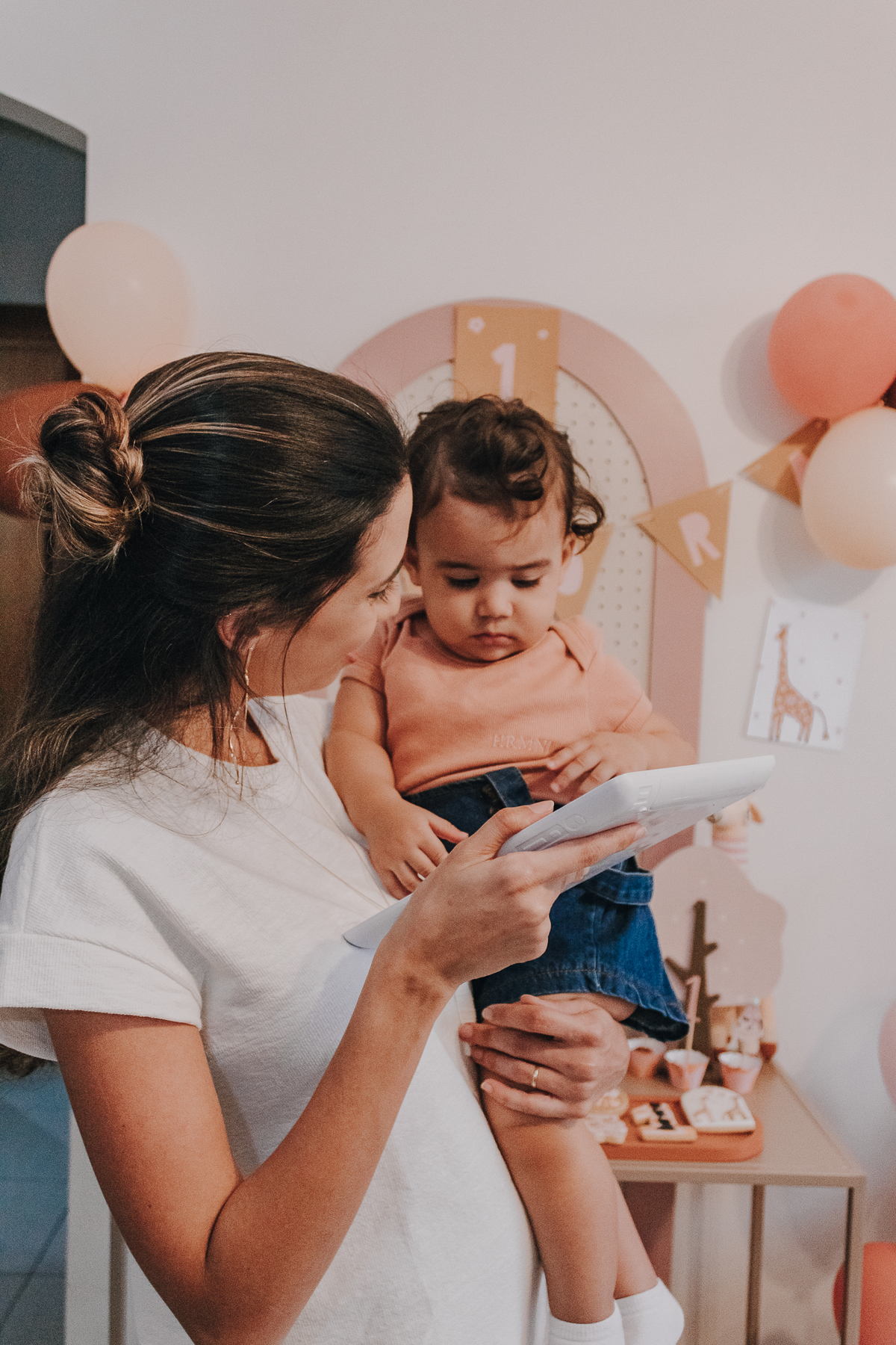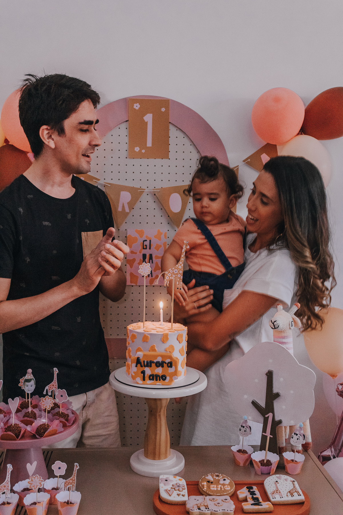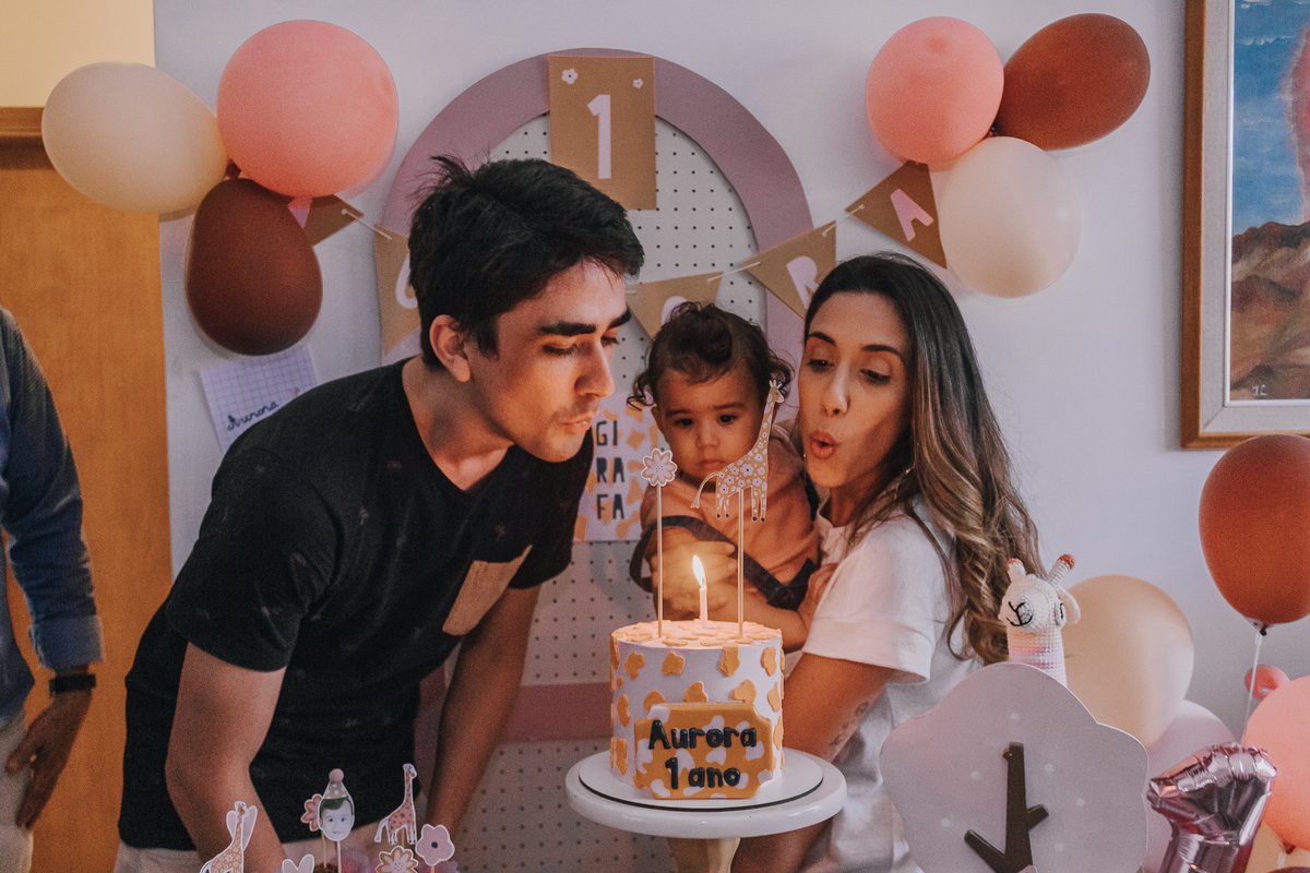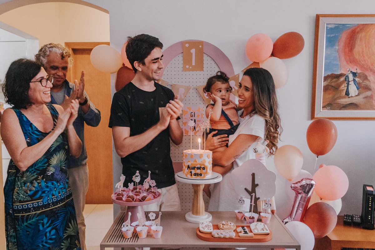 A mamãe Priscila colocou a mão na massa, fez praticamente toda a decoração, que estava simplesmente linda com tema de girafinha e flores e a vovó cedeu o espaço para fazer a comemoração totalmente afetiva, intimista, cheia de amor, e muitas memórias importantíssimas que a Aurora vai poder reviver sempre.